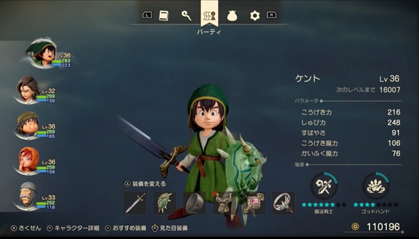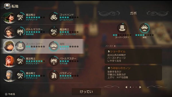 原作ではダーマ神殿に着くまで職業に就けなかったんですが、今作では最初から職業ランクが上がっていく仕組みになっています。