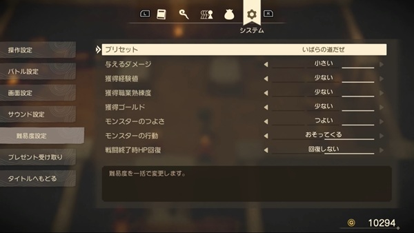 これによって「モンスターの強さ」は”強い”にするけど、「獲得経験値」は”多め”に貰える仕様にするとか。細分化したプレイヤーの趣向に合った調整ができるので感心しました。