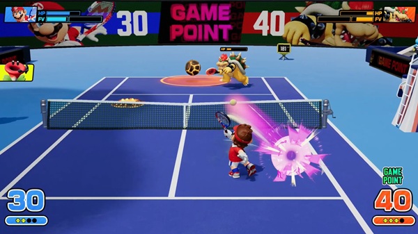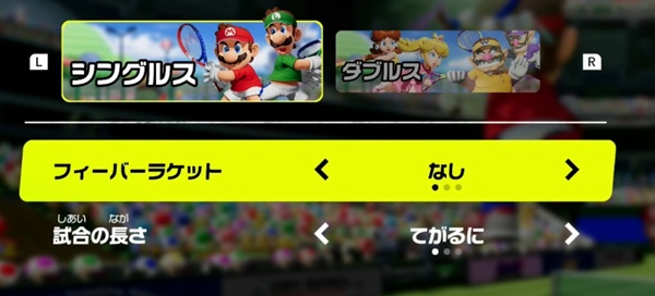今回の「マリオテニス」はパーティゲーム寄りに作られていまして、前作の「エース」で見られた「ラケット破壊」や「加速」の要素がなくなっています。