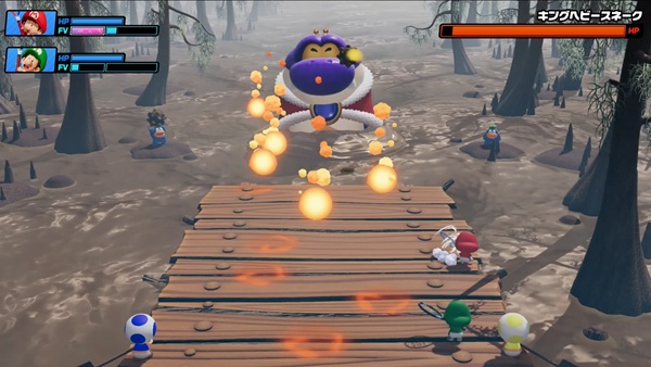 さらにボスのチョイスも面白くて、「3Dワールド」のヘビースネークや「スーパーマリオブラザーズ3」のケロンパなど、普段あまり目立たない敵が登場します。