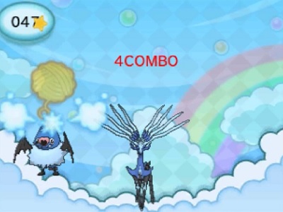 上から落ちてくる毛玉がポケモンの頭に触れる瞬間にタッチして弾き飛ばすミニゲームなんですが、高難易度になってくるとタイミングを合わせるのが難しくなるので、コンボを決めるのが熱いんですよね。