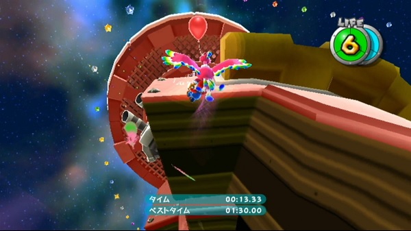 このステージではWiiリモコンの傾き操作を使って空を飛んで障害物を避けて行くのですが、Wii「Wii Sports Resort」の飛行機操作とは違ってなかなか思うように動かせず、少々ストレスが溜まる作りになっています。