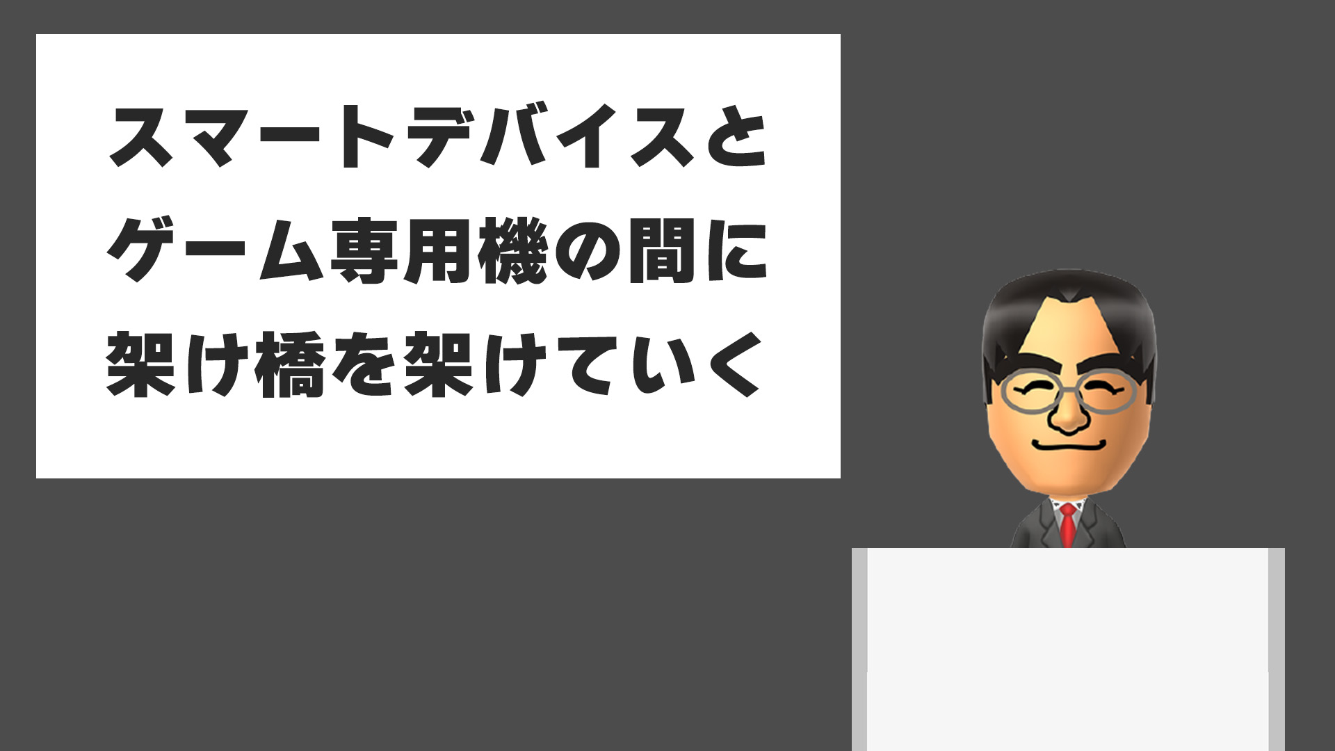 任天堂としては、「スマートデバイスとゲーム専用機に架け橋を架けて、限られた需要を奪い合うのではなく、新しい需要を創り出して相乗効果を生み出していける」。
