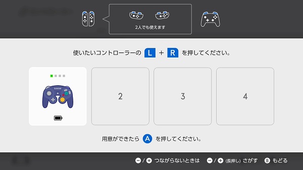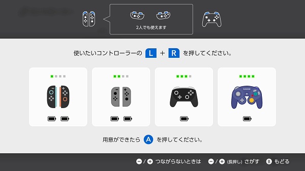 「コントローラー」→「持ち方/順番を変える」からいろんなコントローラーを接続できますよね?