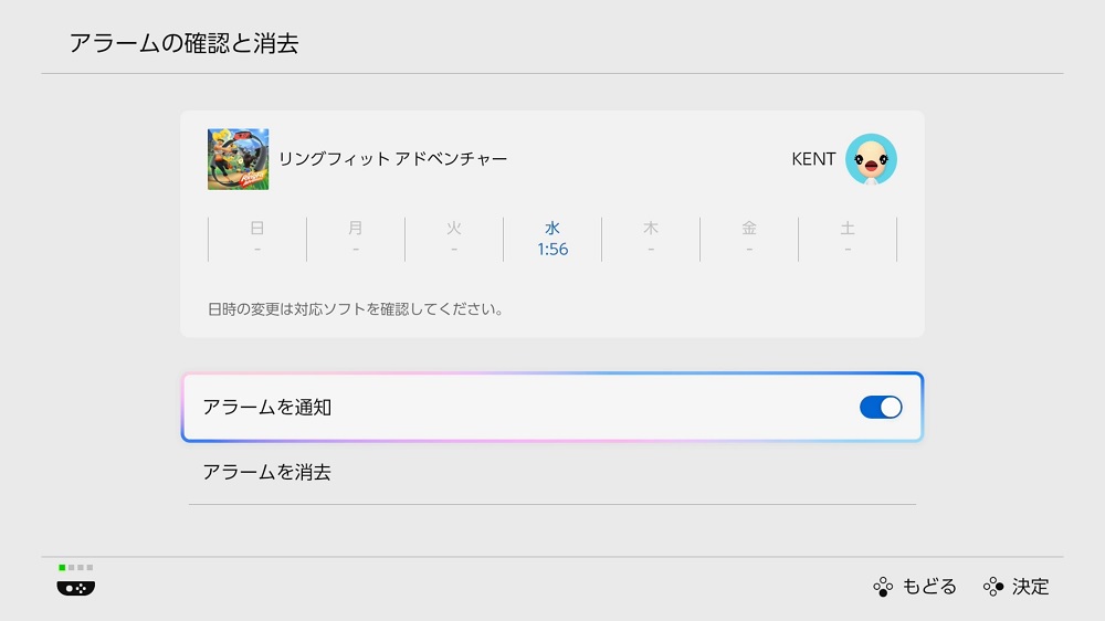 やり方としては、まずは「リングフィットアドベンチャー」や「Fit Boxing」などのSwitchソフト。これらのゲームをSwitch2で起動して、アラームを設定します。