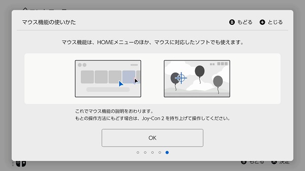 「コントローラー」→「マウス機能の使いかた」を選択すると、5ページにわたってマウスの説明画面が挿入されます。